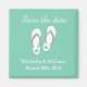 Mint green Save the date beach slipper wedding magnets Perfect reminder for your tropical beach destination wedding. Cute whimiscal illustration with heart and chic script typography. Part of a beautiful set.