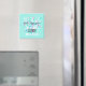 Customizable 100th Birthday save the date magnet with black and white lettering on abstract design of small squares in aqua mint color background (customizable). Other models are available.