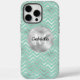 Mint Silver Zigzag Stripes Monogram Case-Mate iPhone Case
