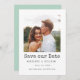 Simple elegant photo save the date featuring your best engagement photo over a white background. Card reverse to a solid green mint colour fully changeable to fit your wedding or photo colour scheme.
