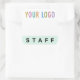 Easily personalise our staff name stickers with your own company logo. You can hand-write the name onto the blank area (be sure to select the matte finish for write-on purposes). These name stickers are ideal for events that require creating temporary name badges on demand. Sold in mint green and other colours (all colours are customisable). Printed in full colour. Low minimum order quantity and no setup fee.