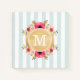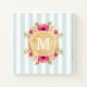 Mint Stripes Watercolor Flowers Faux Gold Monogram Notebook