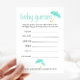 Let baby shower guests make their best guesses at baby's birthdate and time, weight and length! Place a stack at the entrance to the event, pass them around, or leave one at each place setting. Makes a fun keepsake for the mama-to-be, too. Coordinates perfectly with our Mint Green Umbrella collection of gender neutral baby shower invitations and party accessories.