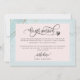 Tell family and friends the great news of your wedding with this elegant "We got Married" Announcement Card. Feel free to add your own message, ours is simply an example. Modern mint and gold textured artistic background, pale blush peach frame and hand written calligraphy details. Back of card with same artistic textured background and elegant decorative logo with bride and groom's full names.