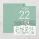 This modern and romantic mint green, white, and silver grey floral table number postcard has a sage green PRINTED ribbon and PRINTED on green and silver hearts with "LOVE" text on it that matches the wedding invitation shown below. ****You MUST change the number 22 to each of the table numbers you need, add it to your cart, and then return and repeat the process until you have all the individually numbered cards that you need in your cart. Stand it on a small easel, or in your centerpieces. If you need assistance, email niteowlstudio@gmail.com.