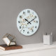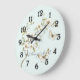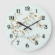 Mint White Flowers Butterflies Large Clock
