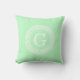 Mint White Greek Key Rnd Frame Initial Monogram Cushion