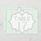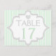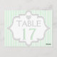 Elegant mint green, white, grey stripes wedding table number postcard. A stylish striped pattern design with mint green, white stripes, a grey heart and your text in a frame. Contemporary yet with a vintage look in a sense. You can change background and text colour choosing from over 200 colours from Zazzle colour chart. This classy design is a customisable template and is part of a wedding set.