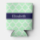 Mint White Moroccan #5 Navy Blue Name Monogram Can Cooler