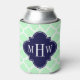 Mint Wht Moroccan #5 Navy Blue 3 Initial Monogram Can Cooler