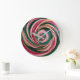 This swirl design mimics the flow of marbled acrylics in a fresh blend of minty green and blushing pink on the clock.