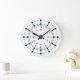 A funky, fun and eye-catching wall clock which has roman numerals, quirky blue dots, lines for the 60 minutes and numbers for each hour. IDEAL FOR - Any boardroom, corporate office, home kitchen, bedroom or reception area.