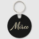 Ein sehr schöner edler personalisierter Button Schlüsselanhänger im whitegold Lettering Look auf schwarz für Mirco.