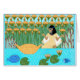 5X7 fold over card of painting by Rabbi Me'irah Iliinsky of Miriam, sister of Moses, watching over his little ark in the Nile. Exodus 2:3-4. The style is that of an Egyptian painting, but Miriam can be identified as she is wearing Tzitziot. Suitable as a Passover card, or for any courageous woman in your life.