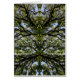 Mirror image tree branches and leaves in sunlight