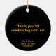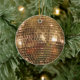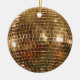Round ceramic ornament with an image of a dazzling mirrored disco ball. The back is black with optional text. See the entire Disco 70s Ornament collection in the PARTY FAVORS section.