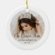 Commemorate the quinceañera's special birthday celebration with an elegant modern "Mis Quince Años" round photo ceramic Christmas ornament. The pictures and all wording on this template are simple to personalize to create your own unique keepsake. The colors, font styles and overlay opacity can be customized with the Zazzle Design Editor tool. The modern minimalist black and white design features trendy script calligraphy, elegant classic typography, and two pictures of your choice. This template is set up for a 15th birthday party, but can be personalized for any age or event. This Quinceañera Christmas ornament makes a stylish keepsake gift idea for a teen girl's Mis Quince Años celebration. Feliz Cumpleaños! Happy fifteenth birthday!