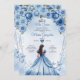 Mis Quince Blue Floral Silver Crown Quinceañera Invitation
