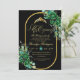 Chic Mis Quince black emerald green and gold 15th birthday invitation with beautiful rose and gold dust on with a gold ink pour effect (the gold is a digital effect, not real foil ) and modern calligraphy. Classy Quinceanera and elegant script and chic flowers print birthday invitation.
