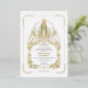 Celebre su unión sagrada con esta exquisita invitación de boda con detalles en pan de oro y motivos florales. Con delicadas rosas, una serena imagen de la Virgen María y una caligrafía elegante, esta invitación establece un tono de gracia divina y romance eterno para su ceremonia católica.