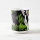 Pictured is a pretty black and white bunny that gets into all sorts of mischief
