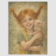 Red-haired girl paper mischievous with capuchin monkey, ideal for decoupage projects, gift, furniture restoration, wrapping paper, etc