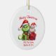 Get ready to bring the holiday spirit to your next gathering with this customisable, funny, and festive Mischievous Green Christmas Cats Christmas Ornament! These Cool Cats, a playful green Santa cat with a mischievous grin is joined by his quirky elf companion, both ready to spread laughs and joy. Personalise this Christmas ornament with your family name to make it a truly special addition to your Christmas festivities!