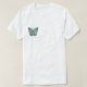 This playful and edgy artwork features a bright blue butterfly with vibrant, gradient wings fading from blue to green, yellow, and pink. Despite its adorable appearance—complete with heart-tipped antennae and large, sparkling eyes filled with star-shaped glints—the character is gripping a large silver kitchen knife with a determined grip. The design contrasts the innocent, colorful beauty of a butterfly with a humorous touch of danger, all rendered in a clean, bold cartoon style.