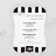 Created in a stunning striped style for a fun fresh setting for your pageant or luncheon event. Shown in classic Black and White stripes on front and back is white on fine quality paper, this program/menu card has a SMALL gleaming Gold coloured four-point crown in the centre bottom. Text in centre. Fancy bracketed edging. We've created the template for you, simply change the information to your own at the right side of your screen in the selection menu. Customise further if you desire by changing the paper selection,text or text colours, background colours, text styles or upload your own image. Lovely choice for receptions, retirement parties, pageant parties, balls, luncheons, events, weddings or veterans events.