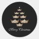 Holiday sticker is shown with a festive holiday tree made exclusively of eight Golden four-point round crowns with a single star on top over a Black background. Customise this item or buy as is. Use for gifts, scrap booking, use with other wrapping paper, gift bags or to place on back of Christmas cards. Customise further or buy as is.