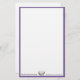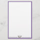 Stationery sheet shown in basic white paper with purple borders, inner thinner grey border; and a pageant queens crown with your personalised name/date, etc. at the bottom of the page. Customise this stationery sheet and personalise your name; choose paper choice and colour too.