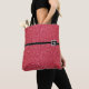 This tote bag is shown with a fun faux Red glitter print and a black stripe between top and bottom with a small Silver crown as if it were a buckle on band.
