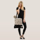 This lovely fashion forward tote bag shows a gleaming Gold crown and your personalised name/title/pageant at bottom over Black with the upper tote bag in Beige with Chocolate Brown vines and scrolls all over. Graphics and text are on both sides of this tote bag. Black handle. Customise further or buy as shown.