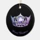 Decorative ornament shown in Black with a round shape with a gleaming Lavender crown print and coordinating text of Merry Christmas. Customise this item or buy as is.