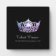 An award for any one who wishes to have a crown on it. Shown in a 5x7" size this plaque is a real stand-up award for your pageant winners, contestants or even best mum. Created in a sleek Black background with light Silver-Grey text specifying the award of your choice which you can customise. Buy as is or change the pageant name of course to your own as well as the award category. Plaque has stand attached and an image of a Gleaming Lilac-Lavender Crown. Scratch resistant coating makes this item a real winner.