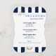 Created in a stunning striped style for a fun fresh setting for your pageant or luncheon event. Shown in classic Navy Blue and White stripes on front and back is white on fine quality paper, this program/menu card has a SMALL Gold coloured four-point crown in the centre bottom. Text in centre. Fancy bracketed edging. We've created the template for you, simply change the information to your own at the right side of your screen in the selection menu. Customise further if you desire by changing the paper selection,text or text colours, background colours, text styles or upload your own image. Lovely choice for receptions, retirement parties, pageant parties, balls, luncheons, events, weddings or veterans events.