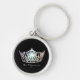 Silver metal colour round key chain with a gleaming Silver Miss America style crown in centre on Black background. Personalise your name, pageant title and date.