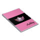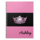 Notebook shown with a photo print of a sharp looking Pink coloured crown on a black background and a custom name. Notebook shown in Candy Pink. Customise this item and change the name to yours or take off the name and buy as is.