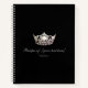 This spiral recipe notebook is shown in sleek Black with a print of a gleaming Silver crown on the cover and has great layout for your ease of adding in your own recipes. Beneath the crown is a space for your custom title and style of text. We've created a sample for you to follow or simply add in place your own style. Back cover in solid colour of Black with a small silver crown at bottom of page along with your custom choice of year [shown is 2018].