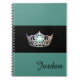 Notebook shown with a photo print of a gleaming Silver coloured crown print on a black background and a personalised name. Notebook shown in Teal. Customise this item and change the name to yours or take off, or purchase as shown.