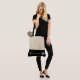 This cute stylish large tote bag is shown in Beige and Black colour block style with a pageant crown and custom text.