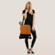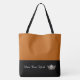 This cute stylish large tote bag is shown in a Pumpkin and Black colour block style with a pageant crown and custom text.