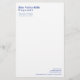 This letterhead or Personal stationery is shown in classic crisp White paper and medium clear Blue text at top left edge which is clearly captioned in bold enough print to get their attention along with your title & information. Lower left corner holds web site, phone and addresses. Add your logo if you prefer and customise further.