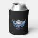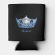 Can cooler shown in a solid colour of black with a glamourous Blue crown photo print on front and back. Personalised name on front. Customise this item or buy as is. Suggestion: add pageant name and date on bottom of can cooler if you prefer.