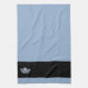 A gleaming Blue & Silver Miss America type crown sits in the middle of a Black horizontal stripe. Customise this item or buy as is. Shown in a Powder Blue.