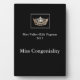 Shown in a 5x7" size this plaque is a real stand-up award for your pageant winners or contestants. Created in a sleek Black background with light Silver-Grey text specifying the award of your choice which you can customise or buy as is changing the pageant name of course to your own. Plaque has stand attached and an image of a Miss America style crown in Silver. Scratch resistant coating makes this item a real winner.