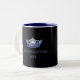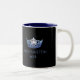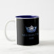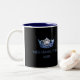 A gleaming Blue crown print poised front and centre on each side of this coffee/cocoa mug. Shown on a Black & White mug with a Navy interior and coordinating Blue text. Customise your interior and Personalise the sample text to your own. Shown as Miss Hamilton 2018.