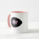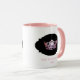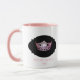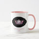 A gleaming pink crown print poised front and centre on each side of this coffee/cocoa mug. Shown on a white mug with a pink interior and coordinating pink text. Customise your interior and personalise the sample text to your own with this template.