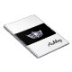 Notebook shown with a photo print of a sharp looking Silver coloured crown on a black background and a custom name. Notebook shown in White. Customise this item and change the name to yours or take off the name and buy as is.