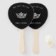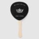 This paddle fan is shown in Black with a print of a Silver coloured Miss America style crown and sample text for you to customise to your liking. Choose from different shapes, etc.
